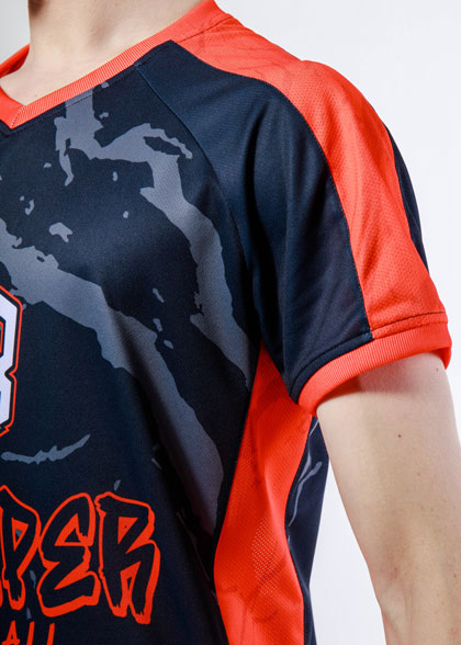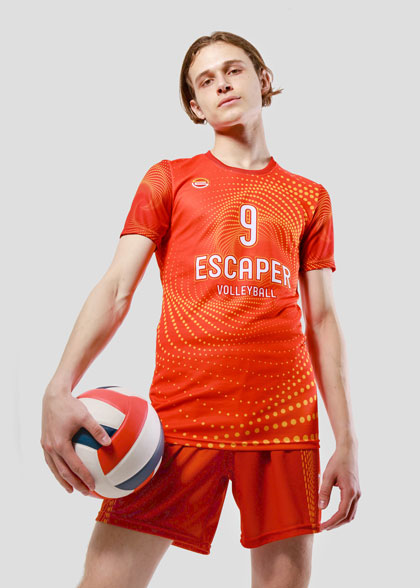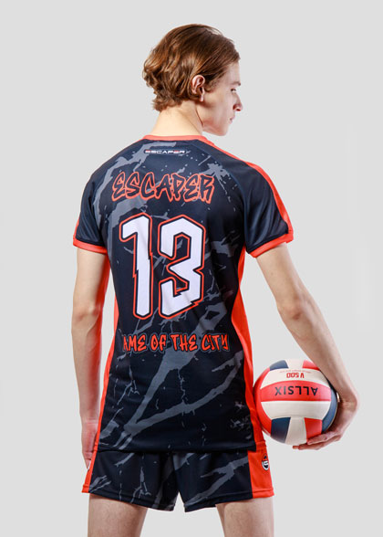 EscaperОписание: Мужская волейбольная форма. Футболка прямого силуэта. Вставки из перфорированной сетки по бокам. V-образная горловина. Рукав реглан с манжетой. Манжеты и горловина из рибаны. Шорты укороченные, свободного кроя с лампасами из фактурной сетки. Эластичный пояс со шнурком для регулировки. Полная сублимация — любой цвет и дизайн (уже входит в стоимость).